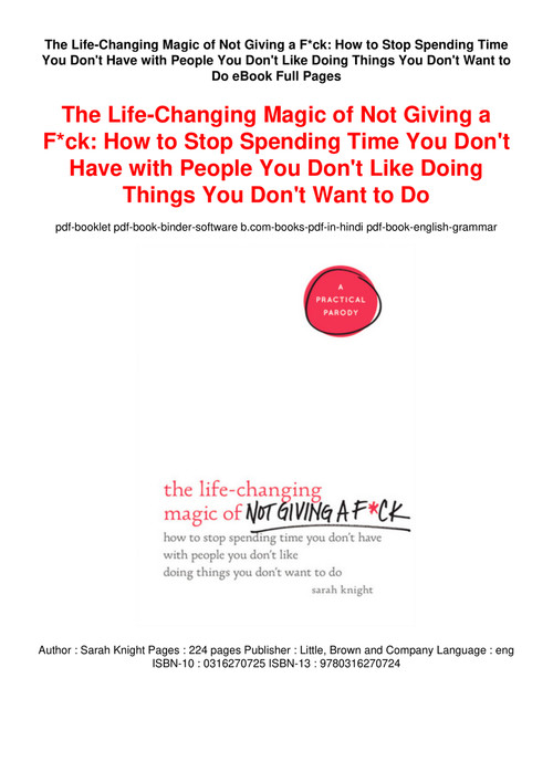 E Book The Life Changing Magic Of Not Giving A F Ck How To Stop Sp