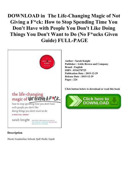 Download In Pdf The Life Changing Magic Of Not Giving A Fck How To